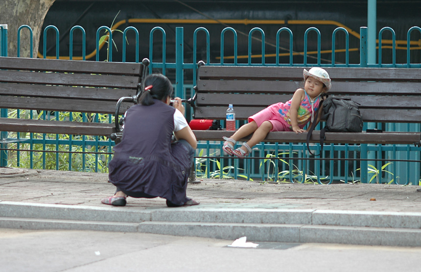 딸의 사진을 찍을 때 딸만 포즈를 취하는 것 같지만