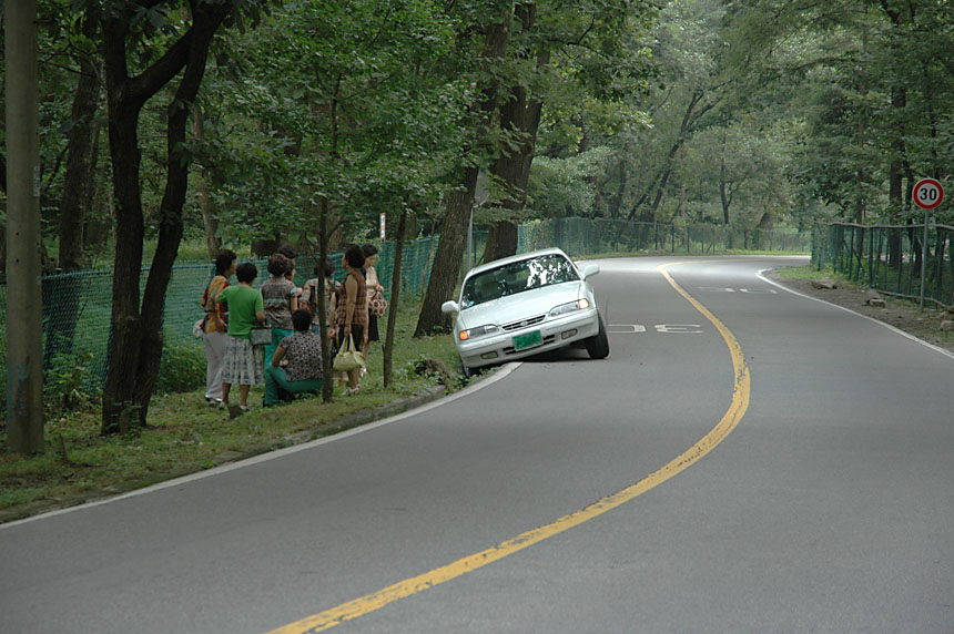 제가 보기에 저 차는 길옆으로 나있는 멋진 나무들에 빠져 한눈팔다가