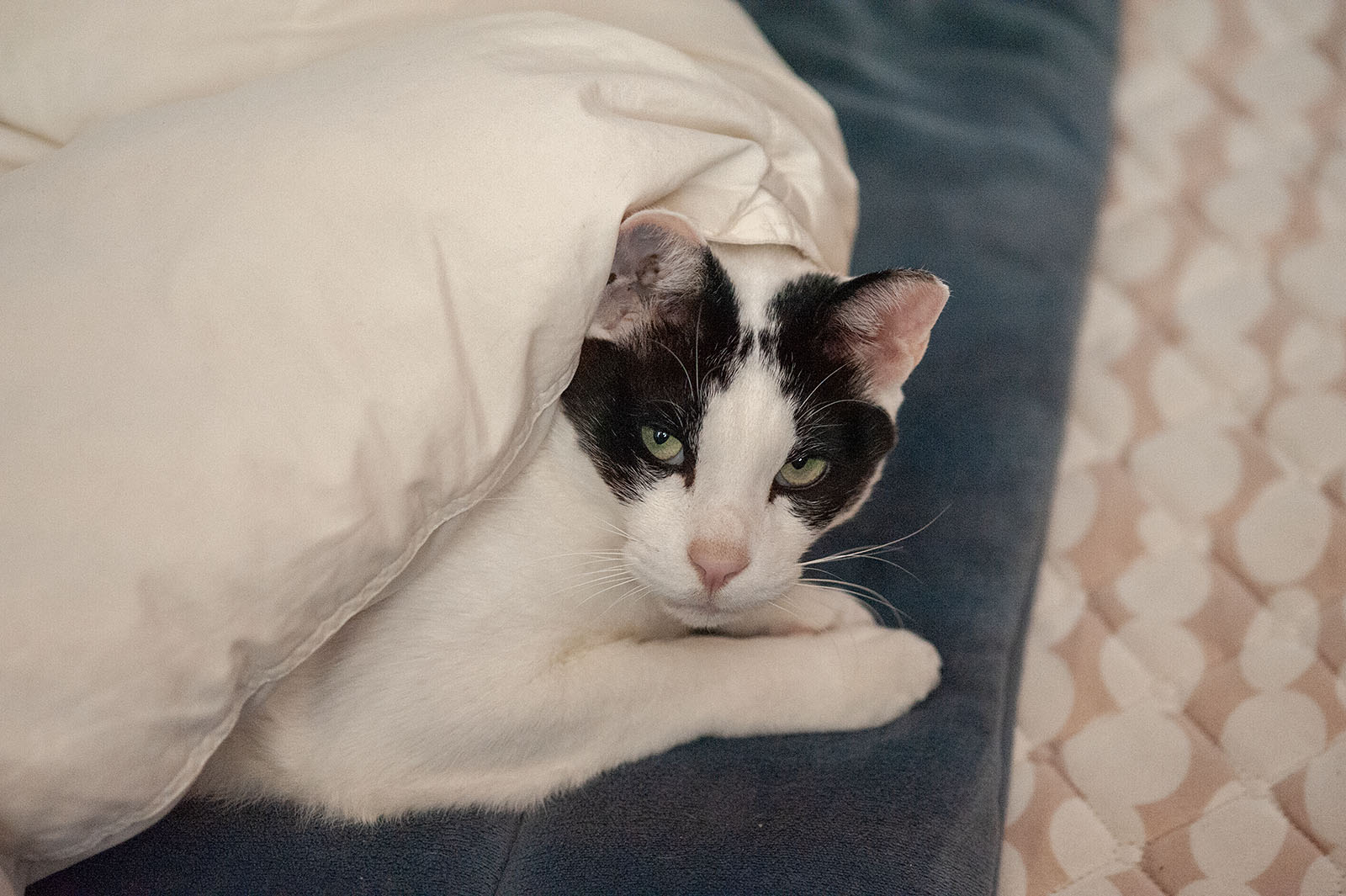 우리 집 냥이 녀석이 내 자리를 차지했다. 누워있는데 옆에 와서 야옹야옹 거려 이불을 들어주었더니 이내 파고들어선 한 잠을 자고 나갔다. 내가 일어나 일하고 있는 사이, 이번에는 들어와 이불을 파고들더니 한 중간을 차지하고 누웠다. 그러다 잠시 일어나 머리를 내밀고 나를 바라본다. 우리는 누울 자리를 보고 다리를 뻗으라고 하지만 고양이는 그럴 필요가 없다. 그냥 다리를 뻗으면 그곳이 고양이의 누울 자리가 된다. 여기저기 다리를 뻗으며 집안을 온통 고양이의 누울 자리로 만든다. 우리는 각자 누울 자리를 가지나 고양이에겐 그냥 온집안이 모두 고양이의 누울 자리이다.