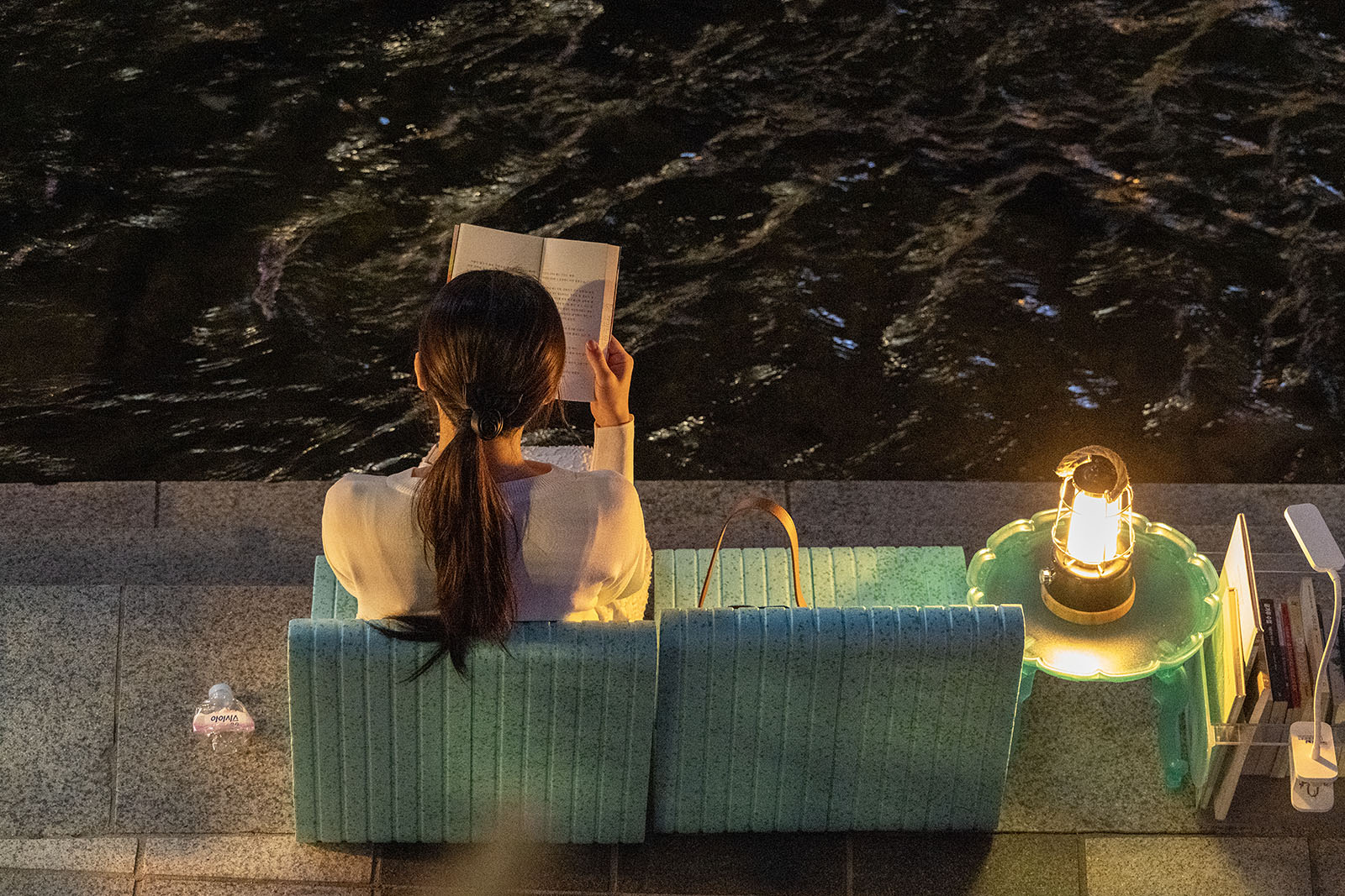 한 여자가 밤의 청계천 물가에 앉아 책을 읽는다. 한낮의 청계천은 햇볕이 폭력처럼 뒤덮어 앉아 있기 힘들었다. 저녁이 햇볕을 거두어 가고 난 밤이면 더위가 크게 가셨고 앉아서 책을 읽을만 했다. 자리 옆에선 남포불을 닮은 등불이 빛을 밝혀 책의 글자들을 비춰주었다. 책을 읽고 있는 동안 천에선 물이 흐르고 책속에선 글이 흘렀다. 흘러간 물은 강에 이르러 깊어 졌고 흘러간 글은 여자의 머릿 속에서 깊어졌다. 시간이 흐를수록 천의 물과 함께 흘러 강같이 깊어지는 여자가 천변의 책 읽는 자리에 앉아 있었다.