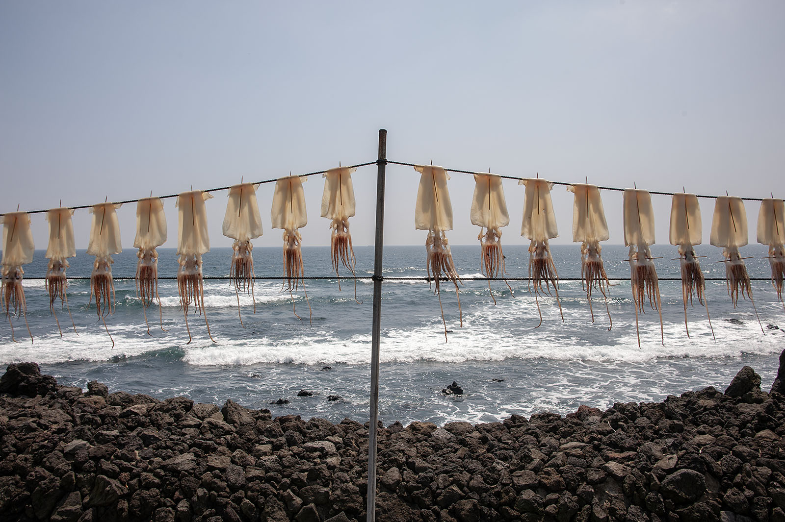제주의 바닷가에서 오징어가 말라간다. 몸의 물기를 모두 바람과 햇볕에 내주며 몸을 말린다. 말리는 동안 철썩대는 코앞의 바다가 오징어의 몸에 바다의 소리를 촘촘히 새긴다. 다 마르고 나면 난생처음 마른 바다가 몸에 가득해진다. 비록 오징어의 몸 어디에서도 이제 바다는 없지만 잘 건조된 바다가 우리 손에 건네진다. 마른 바다를 먹은 우리는 그때마다 바다에 젖는다. 짭조롬한 소금기를 그대로 가진 채 매번 다시 사는 바다이다.