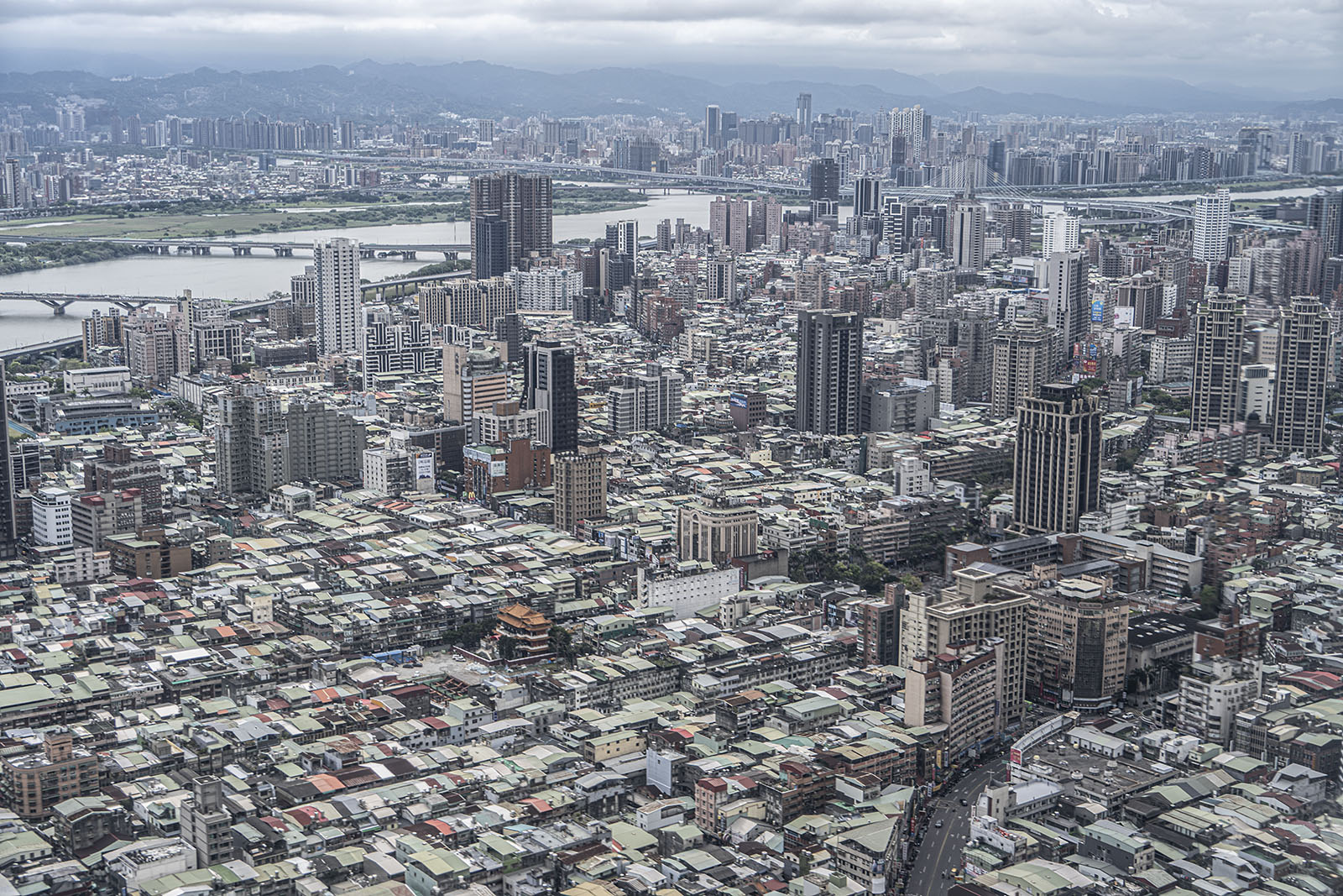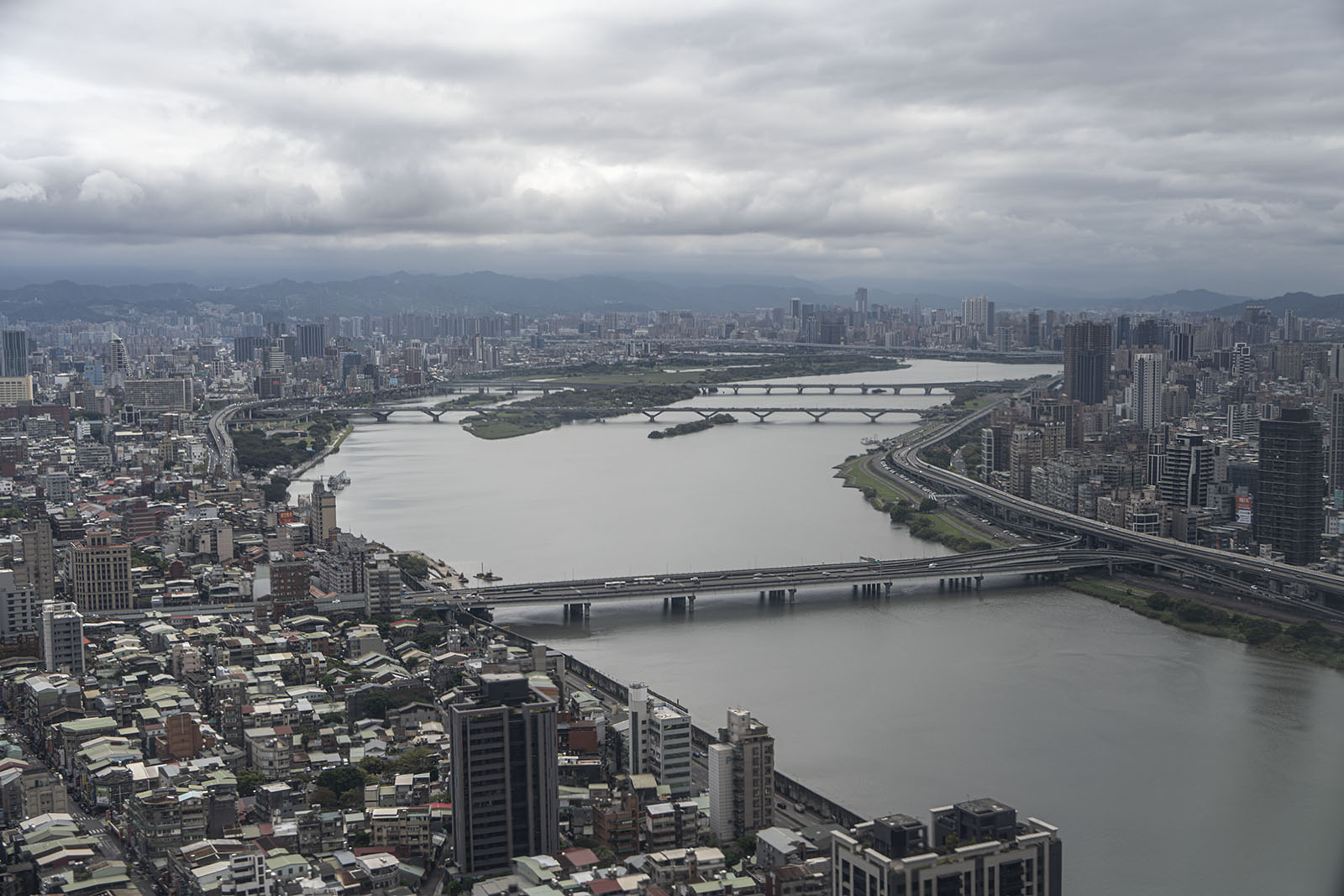 비행기가 강을 넘어간다. 타이베이의 단수이강이다. 가까이 보이는 다리는 타이베이대교이다. 나는 나중에 이 다리를 걸어서 넘었다. 처음 볼 때는 몰랐지만 나중에 알게 되었다. 여행에선 나중에 알게 되는 것들이 많다.