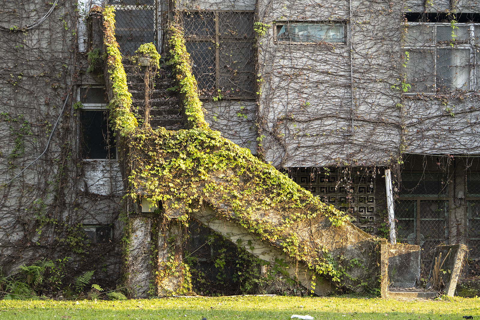 계단은 버려졌다. 버려지자 담쟁이가 계단을 차지했다. 담쟁이 덩굴은 계단을 올라 계단 중간의 가로등도 초록으로 덮어 버렸다. 가로등은 더 이상 밤을 밝히진 않았지만 담쟁이가 덮은 뒤로는 초록으로 낮을 밝혔다. 저녁 때가 되면 낮게 각도를 기울인 저녁 햇볕이 계단을 올라 닫힌 문을 두드려 보곤 했다. 오늘도 문은 열리지 않았다. 저녁 햇볕은 언제나 그랬듯 밤이 깔린 길로 걸음을 돌렸다.