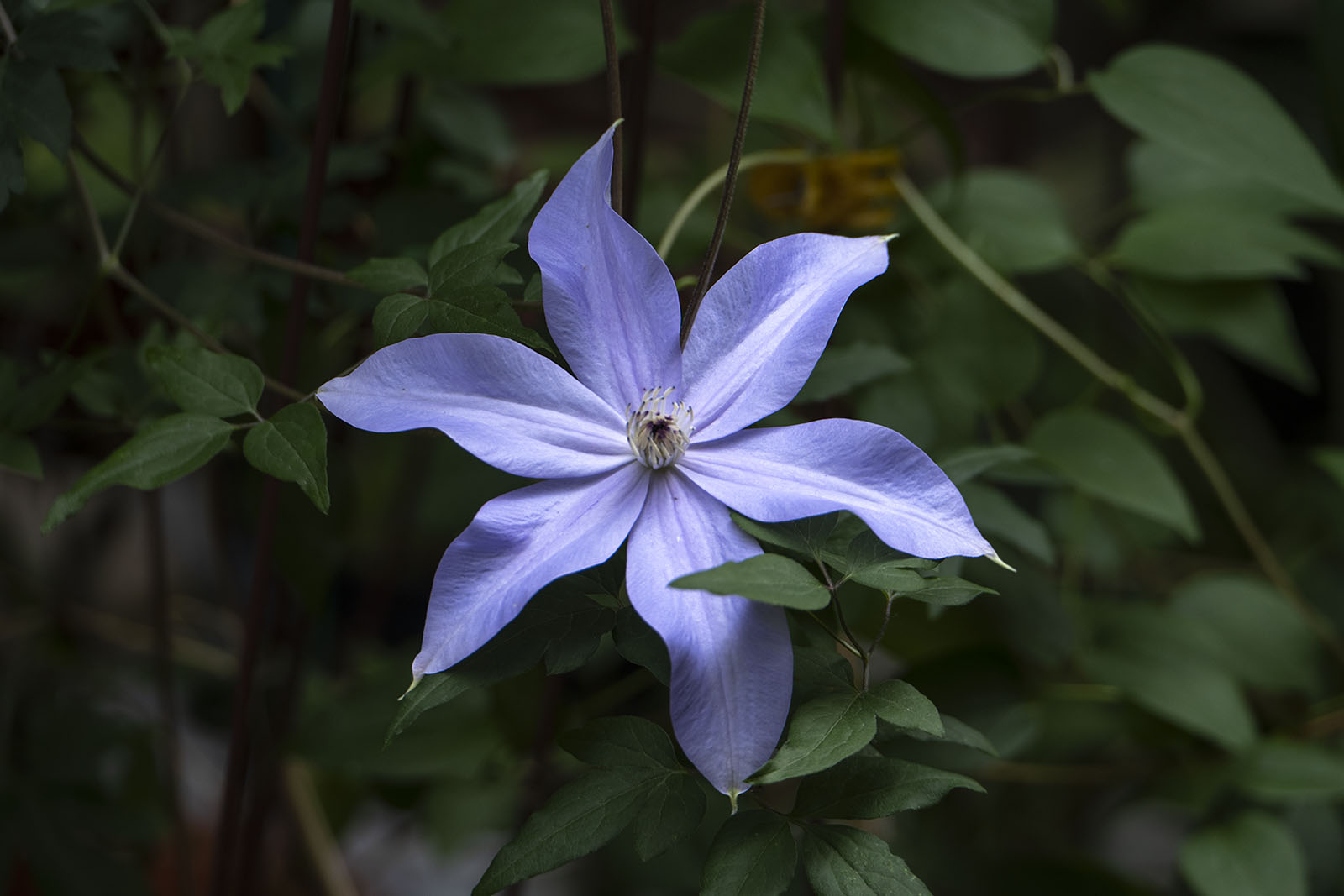 엶은 푸른 색의 클레마티스(Clematis)이다. 골목은 꽃을 숨기고 있다. 골목을 찾은 사람에게만 몰래 꺼내서 보여준다.