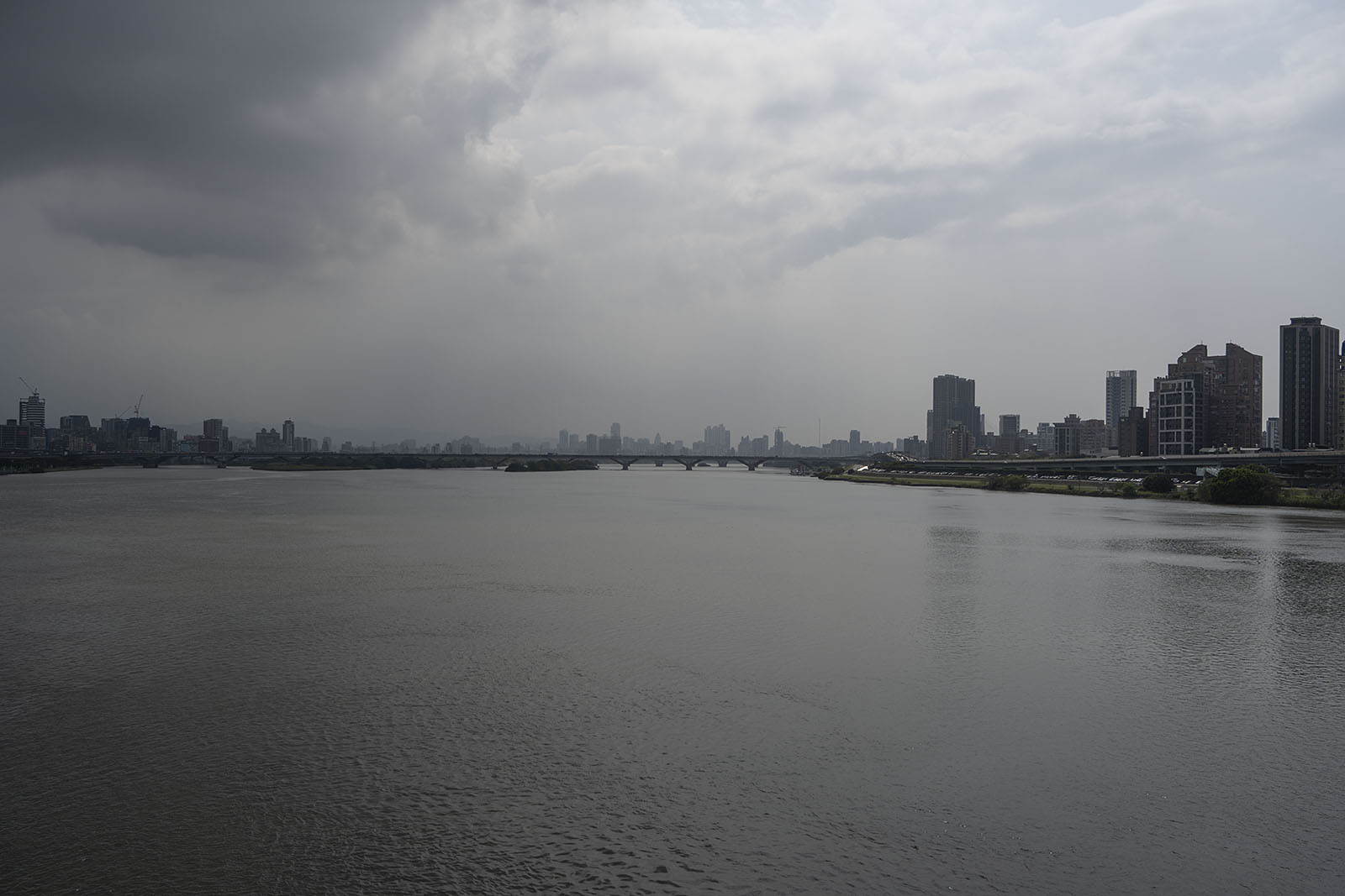 타이베이 대교를 건너와 남단에서 북쪽으로 바라 본 모습이다. 건너는 데 15분 정도 걸렸다. 다시 건너갈 때는 버스를 탔다. 우리의 한강은 사람들이 많이 모이는 곳인데 단수이강의 강변에는 사람이 많지 않았다. 강가에 무엇인가를 파는 상점도 많지 않았다.