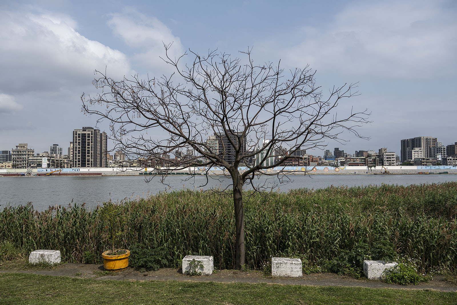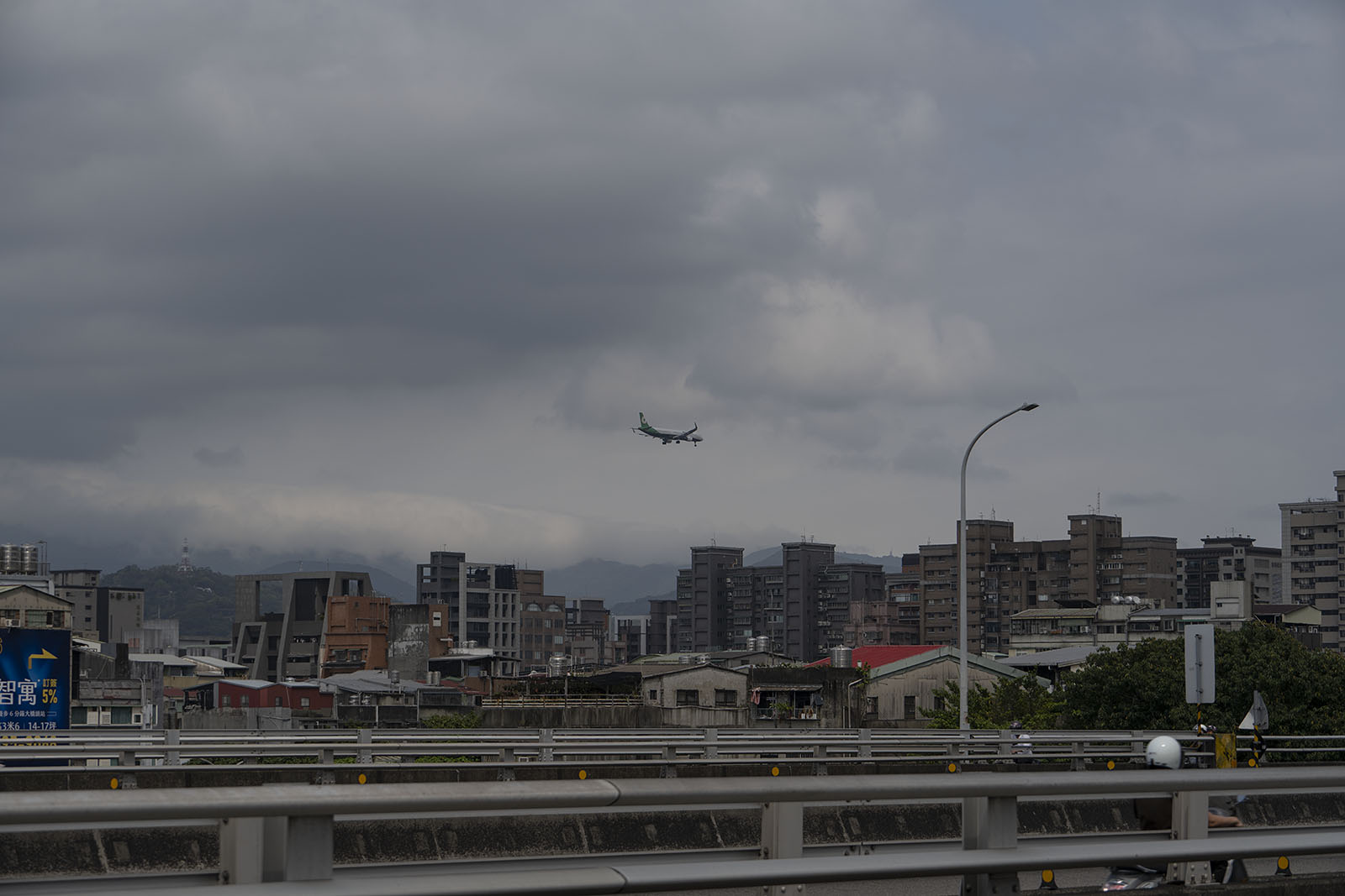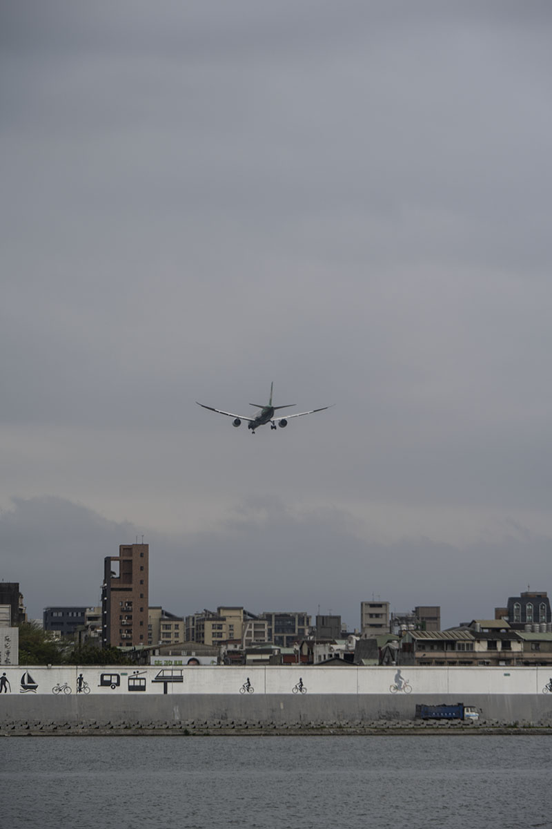 비행기 한 대가 단수이강을 건너 건물들 쪽으로 고도를 낮춘다. 쑹산공항으로 오는 비행기를 탄 이들이 저 비행기를 탔을 것이다. 나도 타오위안공항으로 오지 않고 쑹산공항으로 왔다. 쑹산공항으로 오면 공항에서 도심까지 지하철로 다섯 정거장밖에 되질 않는다. 이렇게 도심이 가까운 공항은 처음이었다. 우리는 김포에 내려도 도심까지는 상당히 멀다. 단수이강의 강변을 걷다 자주 공항으로 고도를 낮추는 비행기를 볼 수 있었다.