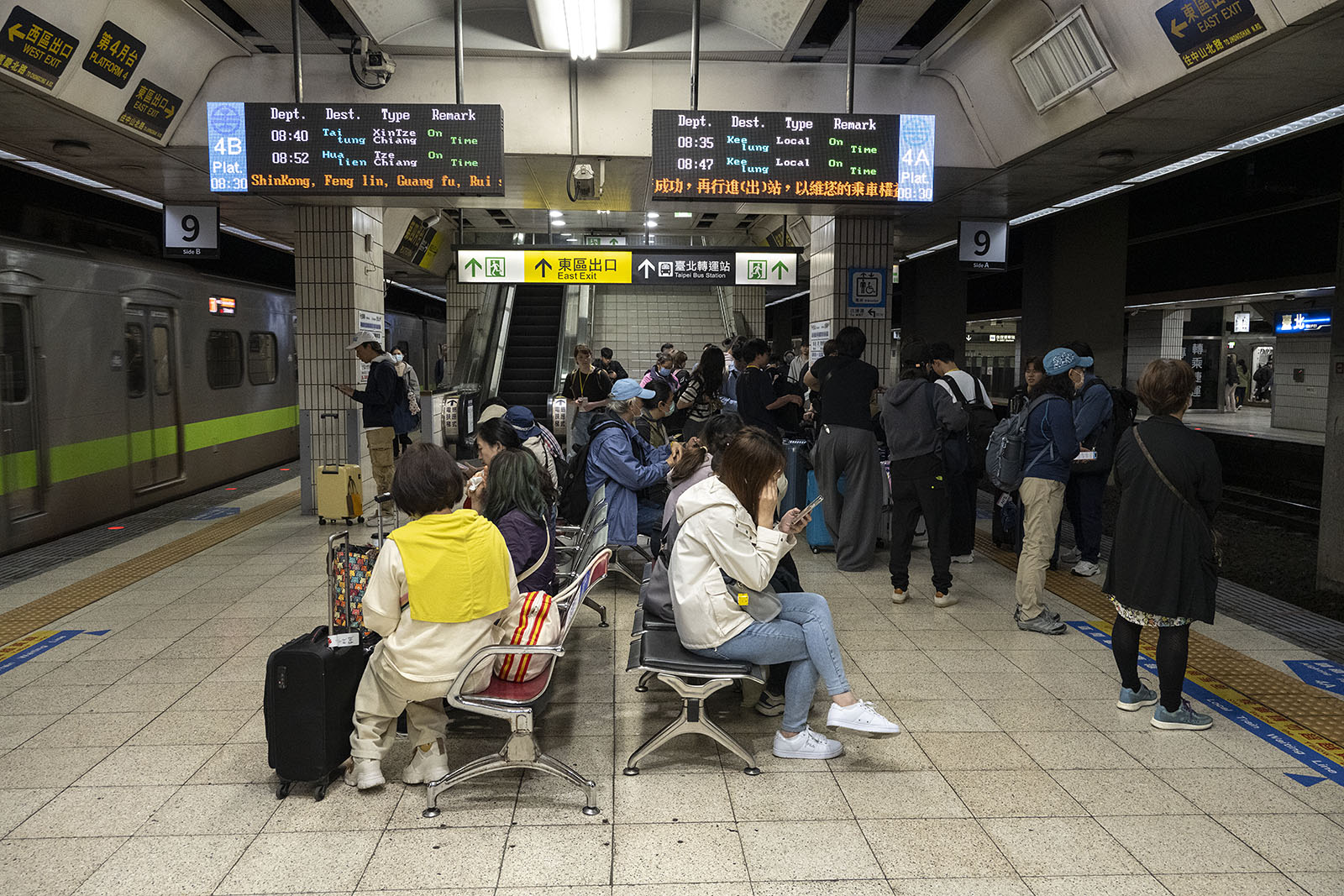 승강장에 무사히 도착했다. 하지만 승강장은 양쪽으로 열차를 탈 수 있도록 되어 있었고 이미 들어와 있는 열차가 있었다. 나는 열차에 올라 아무에게나 디스 트레인 포 지룽이라고 물었고 돌아온 대답은 노였다. 다른 객차의 두 명에게 같은 질문을 반복했지만 역시나 내가 들은 대답은 노였다. 나는 재빨리 열차를 내렸다. 내려서 보니 안내 전광판이 있었다. 전광판이 정확하게 지룽으로 가는 열차를 안내하고 있었다.
