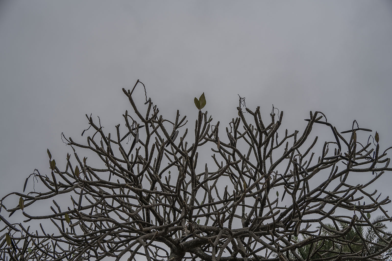 거의 모든 나무가 잎이 무성하지만 간간히 거의 잎이 하나도 없는 나무가 있다. 자세히 보니 잎 하나가 손가락처럼 펼쳐져 있다.