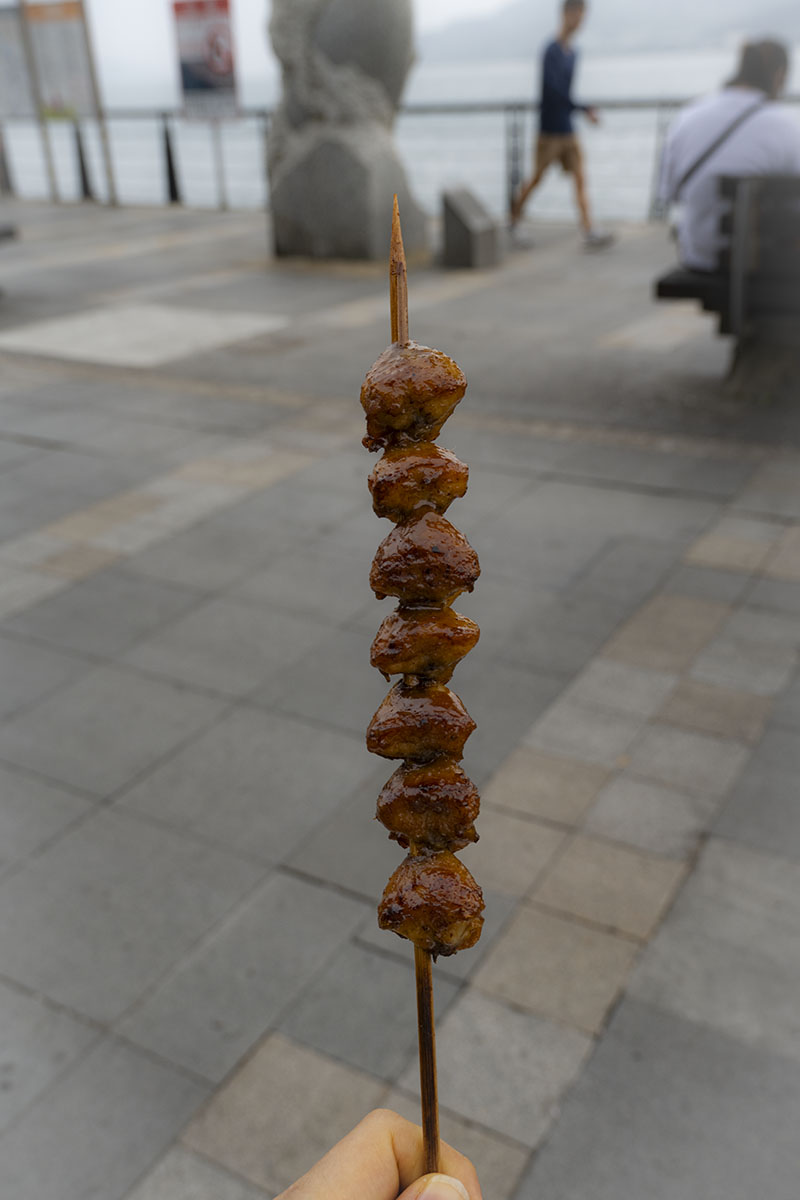 노점에서 꼬치구이 하나 사 먹었다. 동전을 잘 구별을 못해 동전 하나를 보여주었더니 아니라고 한다. 그러면서 다른 동전을 보여주었다. 내가 꺼낸 동전보다 컸다. 그냥 100위안짜리 지폐내고 하나 사먹었다. 길거리 음식도 많고 일반 음식점도 상당히 많았다. 심지어 맥주집도 있었다. 하지만 맥주집에서 맥주를 마시진 않았다. 팔고 있는 맥주가 아사히였기 때문이다. 대만까지 와서 일본 맥주를 마신다는 것은 좀 그렇다는 생각이 들었다.