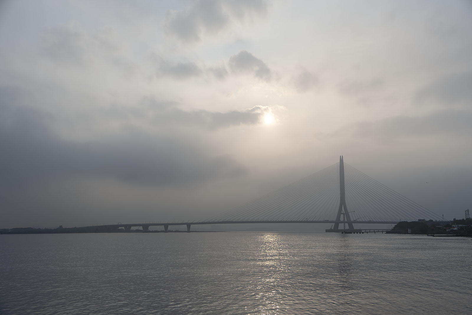 단장대교 너머로 해가 지고 있다. 강가에서 보고 있지만 해는 지금 바다 너머로 지고 있다. 이곳에선 강의 끝에서 바다 너머로 해를 보낸다.