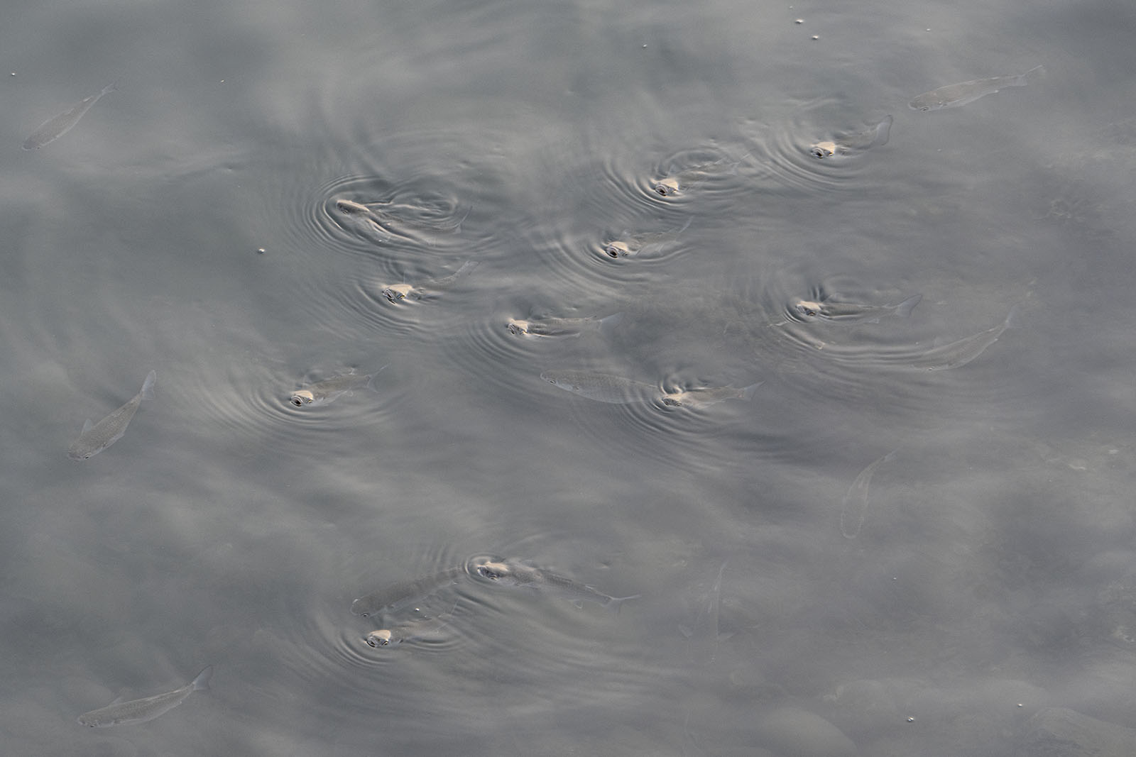 언젠가 바닷가에서 주둥이를 물밖으로 내놓고 헤엄치고 있는 물고기 떼를 본 적이 있다. 단수이에 와서도 그 광경을 다시 보았다. 눈여겨 보면 물고기의 모습도 보인다.