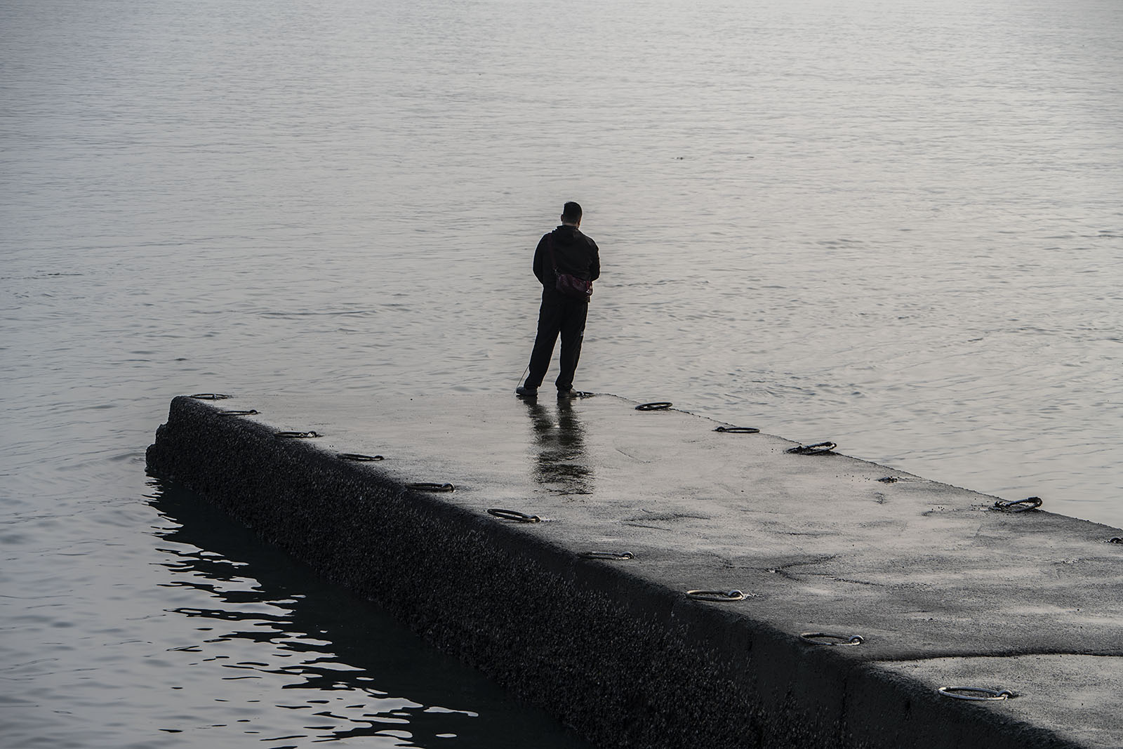건장한 체구의 남자가 낚싯대를 드리우고 있었다. 그의 발밑에 찰랑대고 있는 물결이 흘러내려온 강의 것인지, 밀고 들어온 바다의 것인지 알 수가 없었다.