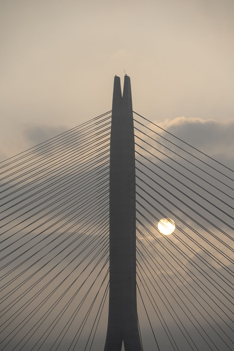 해가 진다. 지는 해가 단장대교 타워의 줄에 걸려 있다. 단장대교 타워는 거대한 하프가 된다. 저녁은 해가 단장대교 하프를 연주하는 시간이다.
