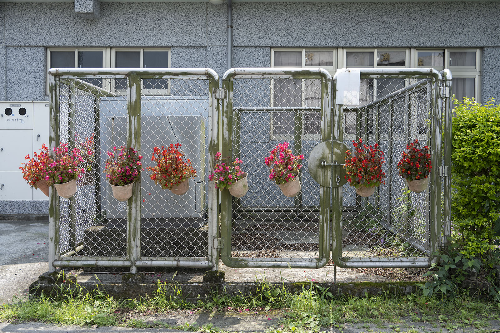 화분을 철망에 걸어 놓았다. 하지만 대만에 와서 생각이 바뀌었다. 땅은 수평의 운명을 산다. 화분을 철망에 거는 순간 수평의 운명을 살아야 했던 땅이 수직의 높이를 갖는다. 땅이 일어선 순간이기도 하다. 인간은 땅의 운명을 그대로 받아들여 수평의 세상을 사는 것이 운명이었지만 사람이 많아지고 수평의 땅이 점점 좁아짐에 따라 땅을 수직으로 개척하기에 이르렀다. 고층의 건물과 아파트는 인간이 일으켜 세운 수직의 땅을 가장 전형적으로 보여주는 예이다. 수평의 땅이 비좁아 살 수 있는 땅을 더 이상 갖지 못하게 되었을 때 인간들은 수직의 땅을 개척했으며 이제 화분도 그 수직의 땅을 산다.