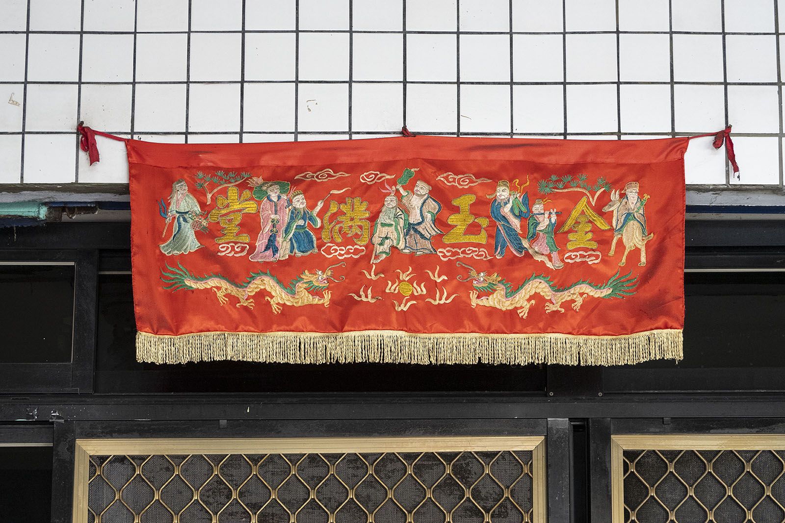 1시간 반 가량을 걸었지만 어디에서도 바다의 낌새가 보이질 않았다. 그때쯤 배가 고파 눈에 보이는 식당을 골라 들어갔다. 식당의 벽에 화려한 색의 긴 천이 걸려있다. 천은 금옥만당(金玉滿堂)이란 글귀로 채워져 있다. 금이나 옥처럼 귀한 것으로 가득 차라는 소원이다. 지나가다 밥한끼 먹고 가는 나도 이 집의 금옥을 채우는 데 한몫하는 것일지도 모른다. 갑자기 내가 귀한 존재가 된 느낌이었다. 이런 천은 대만의 민간 신앙에서 집안의 평안과 행운을 기원하는 것으로 팔선채(八仙彩)라 한다고 한다.