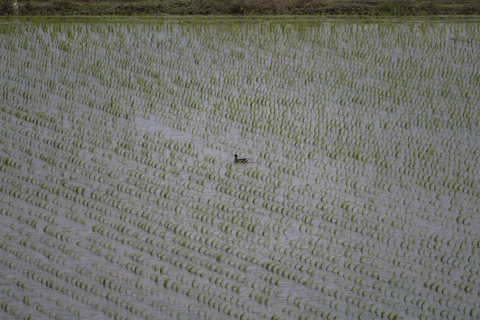 쇠물닭(Common Moorhen)이 넓은 논을 독차지하고 돌아다닌다. 물이 깊은 곳에선 헤엄을 쳤고 물의 깊이가 낮아지면 걸어다녔다.