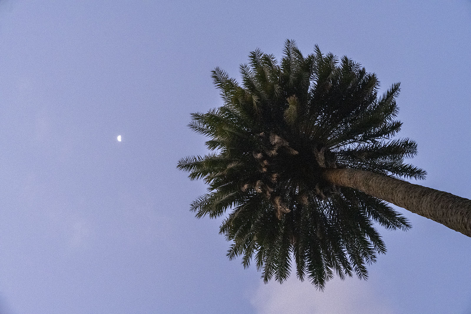 야자수 옆으로 저녁 달이 떴다. 달은 반달이었으나 야자수 잎은 보름달을 펼쳤다.