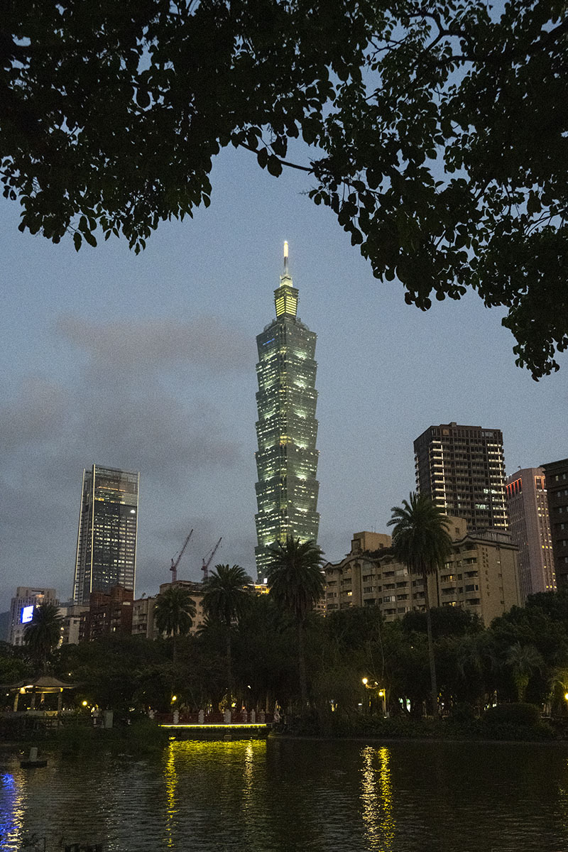 우리는 중산공원(中山公園)에 들렀다. 공원에는 연못이 있다. 불이 들어온 101 빌딩이 보인다. 나무의 푸른 잎들이 윤곽선을 그리며 함께 해 주었다.