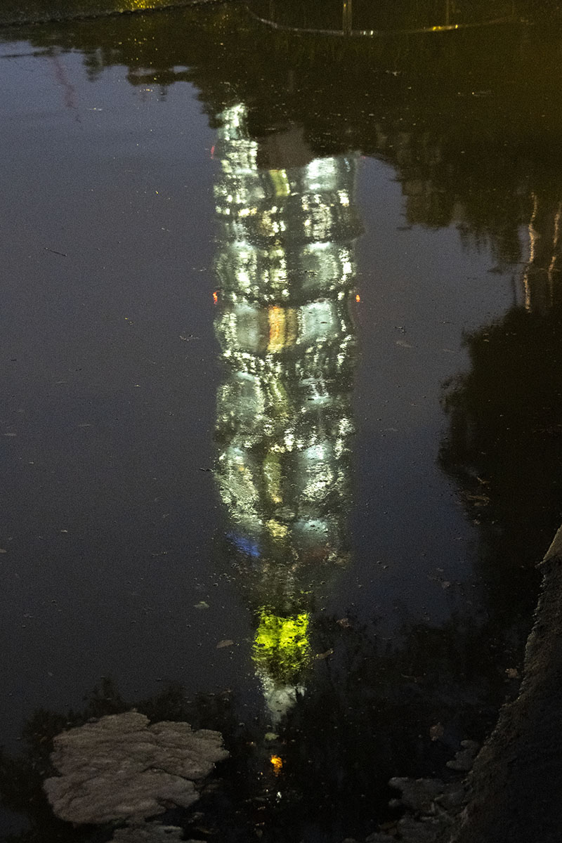 밤에는 불이 들어와 빌딩의 느낌이 낮과는 다르다. 8층 단위의 층마다 조명이 위를 향하고 있다. 혹시 밤마다 불빛을 먹고 자라는 것은 아닐까.