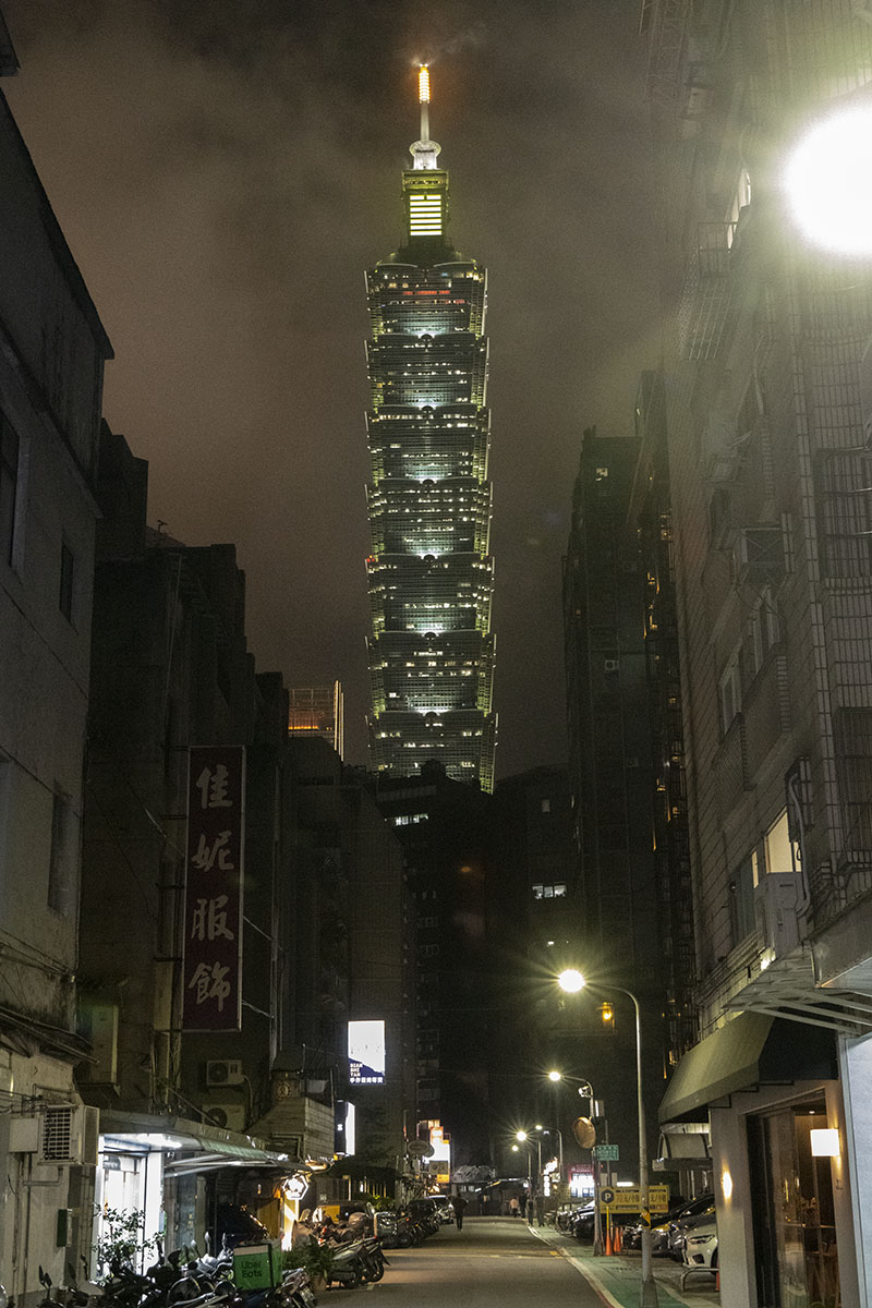 타이베이 101 빌딩은 타이베이를 돌아다니면 어디서나 느닷없이 출몰한다. 때문에 101 빌딩은 하나이면서도 동시에 온갖 곳에 있다. 비행기가 쑹산공항에 내릴 때 그 빌딩을 볼 수 있었으며 심지어 대만의 이란으로 가는 버스가 타이베이를 벗어날 때도 산너머로 그 빌딩이 보였다. 타이베이를 여행하는 이들은 이 빌딩이 잘 나오는 골목을 찾아가 사진을 찍는 일정을 가질 정도로 빌딩의 인기는 높다. 일부러 찾아간 것은 아니었지만 딸이 가려고 찾아 놓은 음식점이 마침 이 빌딩의 근처에 있었다. 저녁을 먹기 위해 거리를 걷는 시간이 101 빌딩의 투어를 겸하게 되었다.