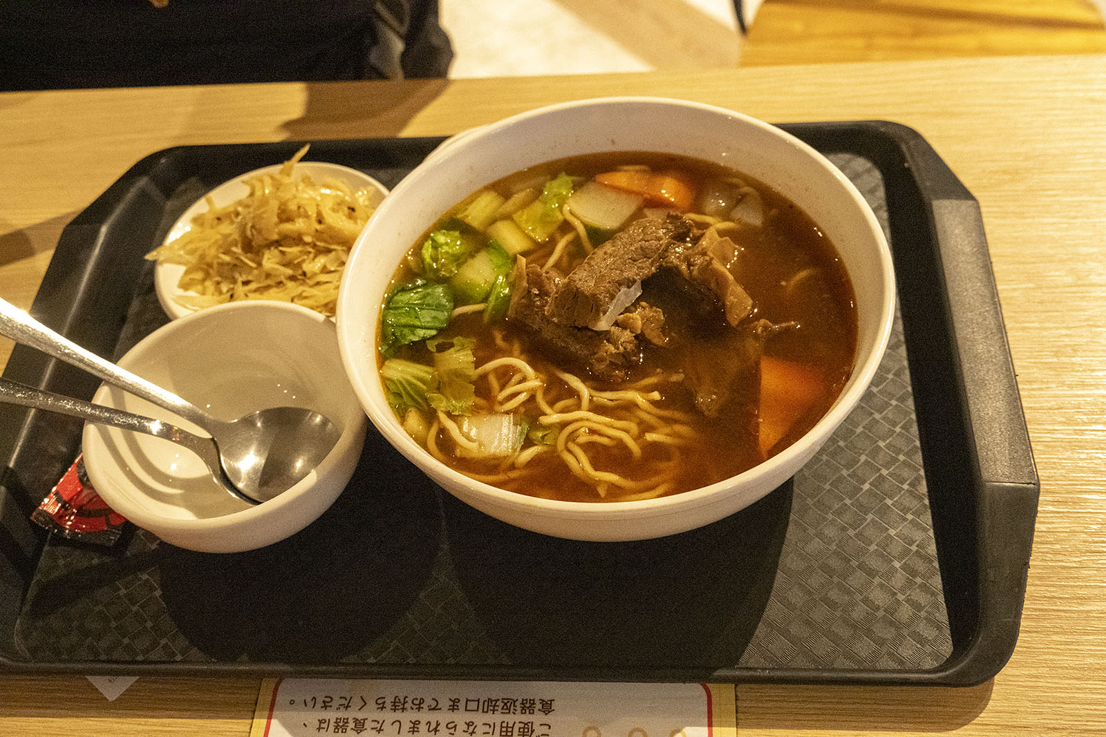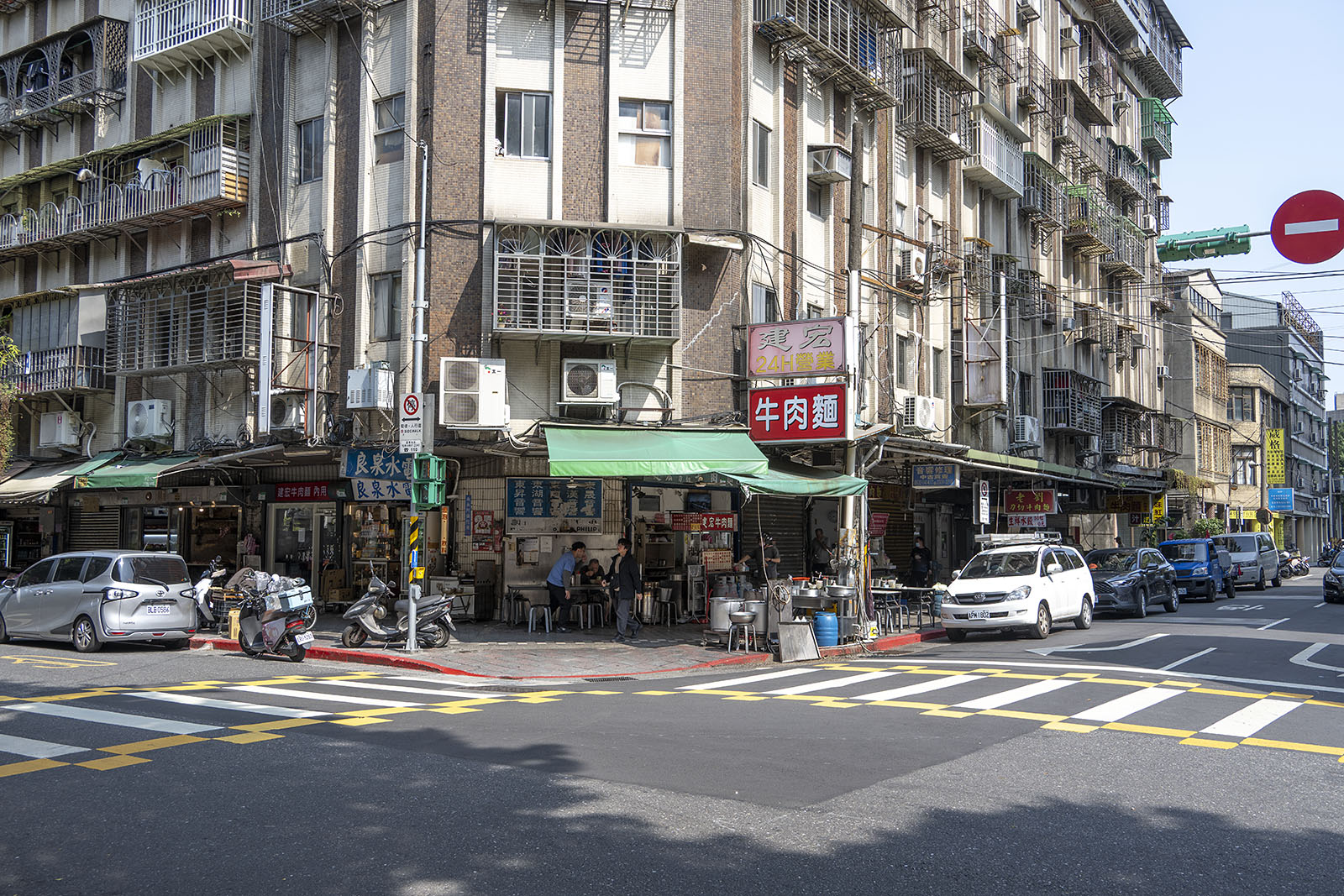 주도로를 벗어나 이면으로 들어가자 음식점들이 눈에 띈다. 간판에는 한자로 건굉우육면(建宏牛肉麵), 그러니까 지엔홍우육면(Jianhong Beef Noodles)이라 되어 있었다. 밤에는 이곳의 거리로 들어가는 입구에 내 걸린 등에 불이 들어오곤 했었다. 다른 곳에 비해 상당히 값이 저렴하다고 한다. 이용해 보지는 못했다.