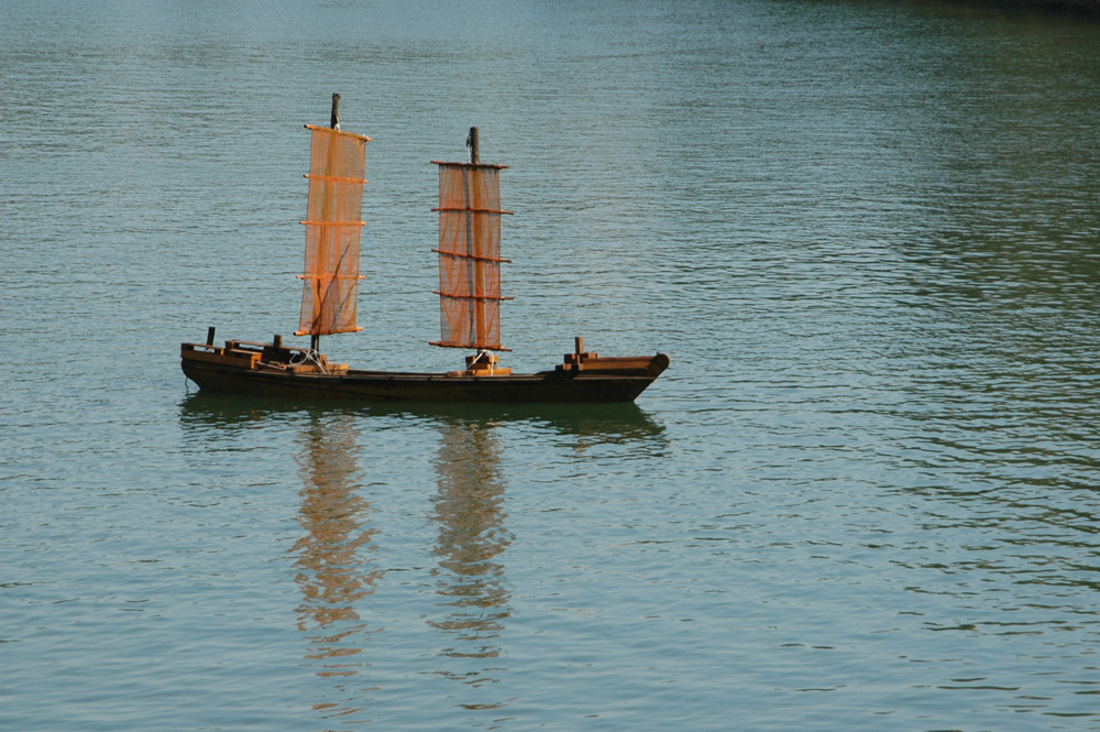 배는 돛을 날개처럼 세우고는 그 문양을 타고 물 위를 가고 있었다.