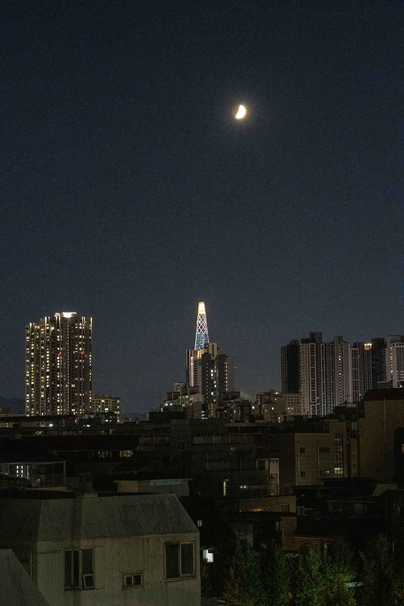 2024년 01월 04일2024년 01월 03일생각나는 대로 끄적거리기 달 멀리 롯데 타워의 불빛이 환했고, 가까이 우성아파트의 계단 불빛도 환했지만 내 마음 속을 밝혀준 것은 아득한 하늘에 떠 있는 손톱만한 달이었다.